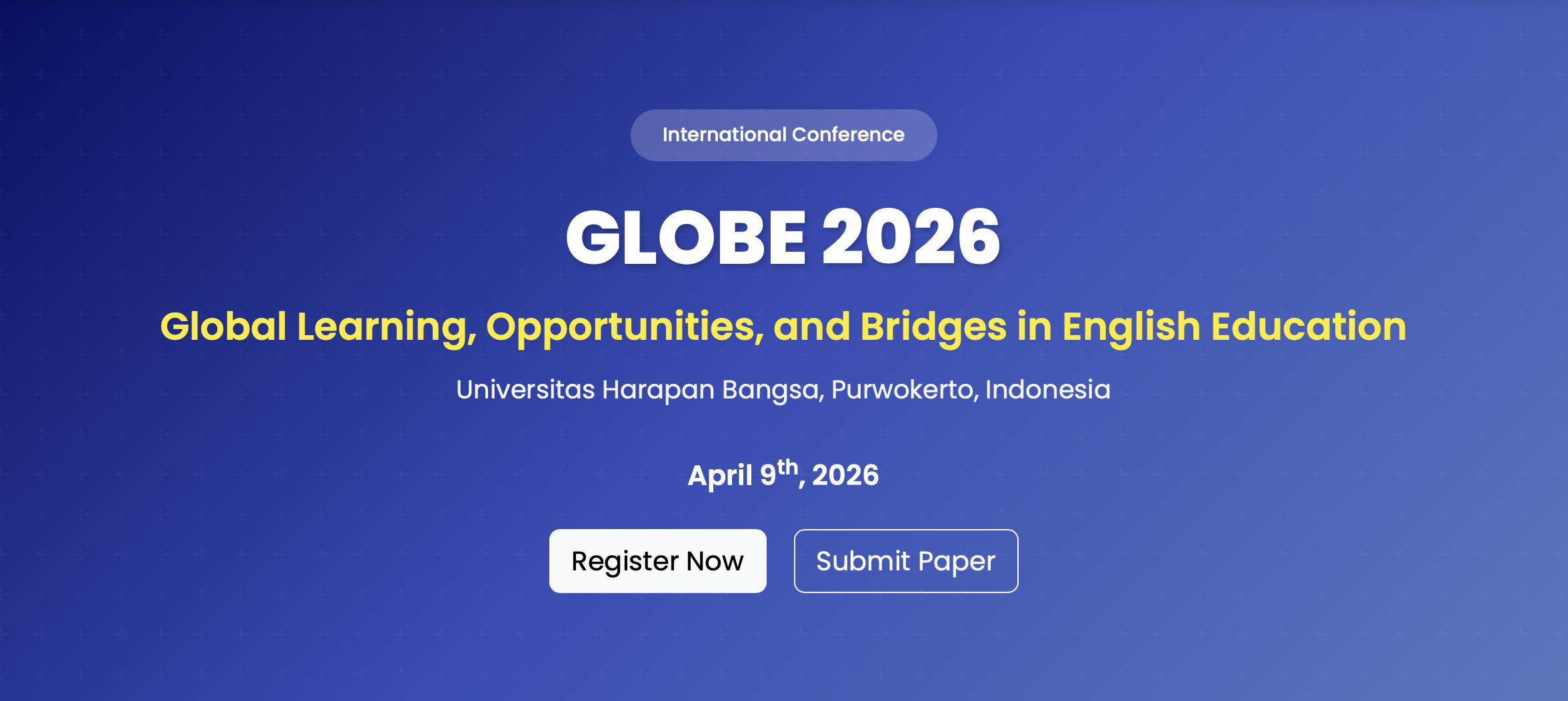 The English Education Study Program, Faculty of Social Sciences, Universitas Harapan Bangsa, Indonesia, cordially invites academics, researchers, educators, practitioners, and postgraduate students to submit original papers to The 1st GLOBE Forum 2026, an international academic webinar to be held online in 2026.